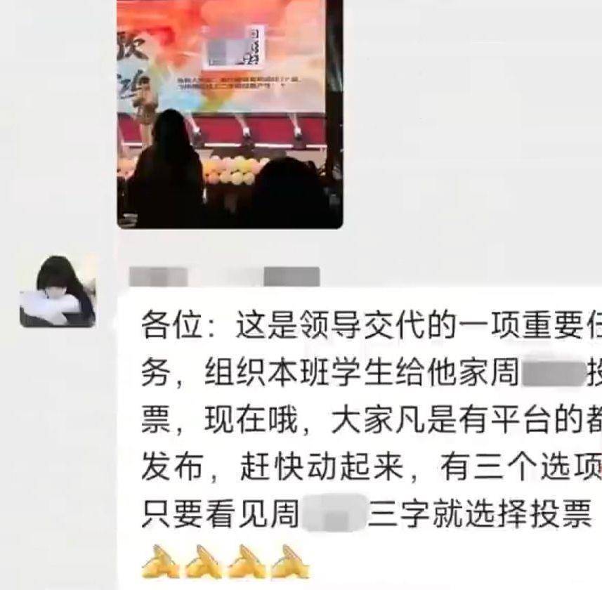 12月9日,有网友在社交平台反映,郑州电力中等专业学校有学校领导,要求学生为就读于浙江某大学的学生进行“校园十佳歌手”投票。